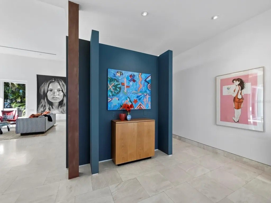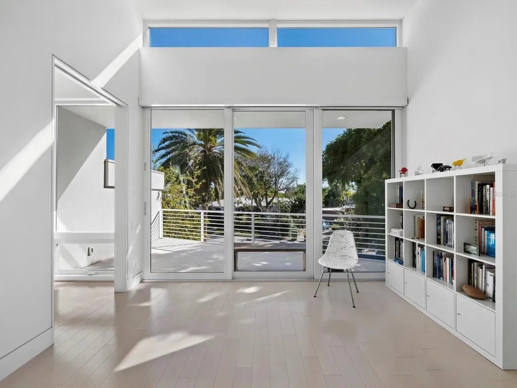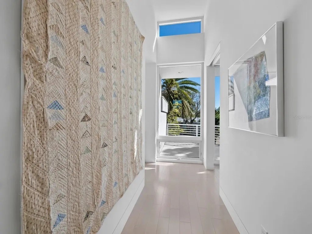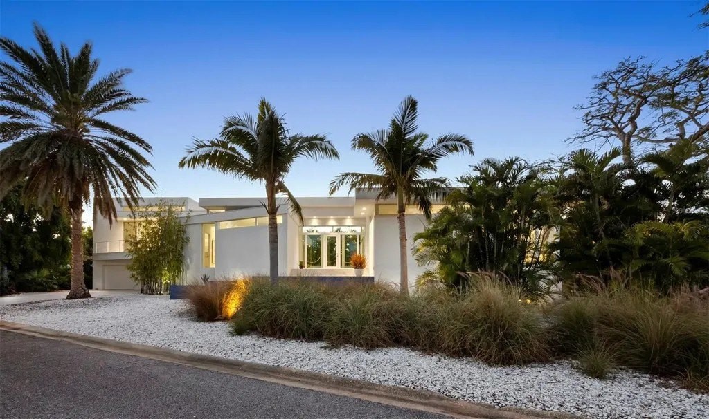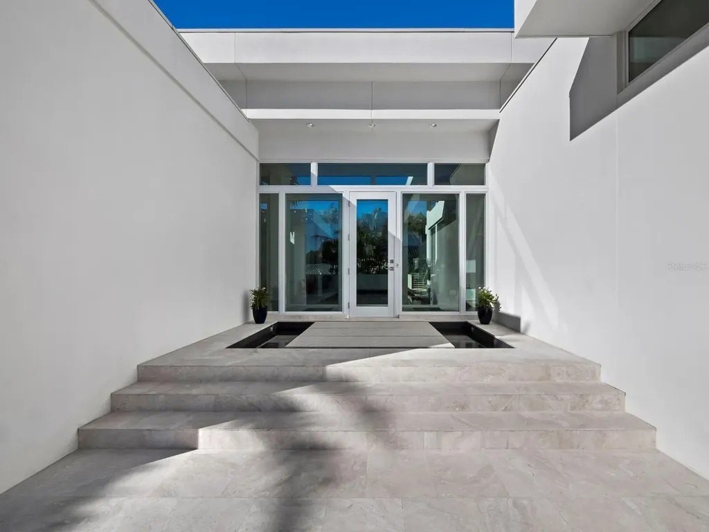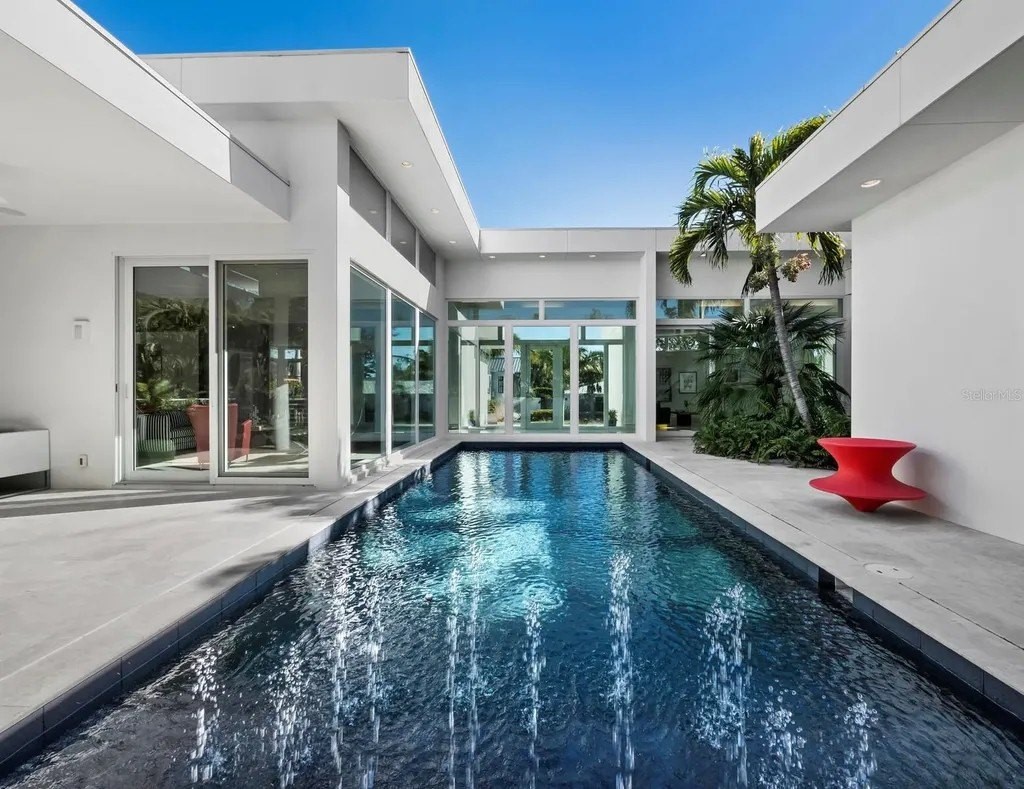 An icon of modern design in the style of the world-renowned Sarasota School of Architecture, 1235 Center Place combines award-winning pedigree with exceptional luxury in a setting that is as coveted for its natural beauty and access to amenities as for its storied mid-century and modern estates. Known as the Light Box House for its distinctive angles and use of glass walls to showcase courtyard and exterior views, this home was custom built in 2012 by the current owners to foster both idyllic privacy and elevated hospitality. The home and architect Jonathan Parks have been widely celebrated for its design, winning the AIA Tampa Bay Merit Award for Architecture and the Grand Aurora Award for a custom home, with features in the Herald-Tribune's Style Magazine, Sarasota Observer, and HomeDSGN magazine. Occupying the corner lot of Westway and Center and two doors away from the famed Umbrella House, the home is thoughtfully oriented around a central pool that serves as a focal point for both reflection and recreation. Stretching between north and south wings that gently delineate spaces for private retreat and open entertaining, 3,700 A/C square feet encompass three bedrooms with three and a half bathrooms, an office, an open concept gourmet kitchen and adjacent dining and living space, all purposefully positioned to capture optimal light and accentuate the interplay of built features with the tropical landscape. An elegant contrast to the brilliant sky and foliage outside, the interior is a refined gallery that meticulously balances walls of glass with solid surfaces for display and function, from art-hung walls to Caesarstone countertops. While complementing the mid-century style of surrounding homes, contemporary construction here offers the significant advantages of elevation for flood consideration, high-efficiency impact rated materials, and modern integrations including heated primary bathroom floor, motorized window coverings, Generac generator, LED landscape lighting, and more. Recent upgrades include two Carrier Infinity HVAC systems installed in 2025 and 2024. Lido Shores is coveted for its concentration of mid-century, modern, and post-modern homes, with masterpieces by Paul Rudolph, Carl Abbott, Don Chapell, and others renowned for their architectural influence. Serene and private but within minutes of St. Armands Circle and Downtown, this special island enclave offers immediate access to the tropical waters of Sarasota Bay and the Gulf and innumerable cultural amenities that include fine and performing arts, dining, and shopping.
